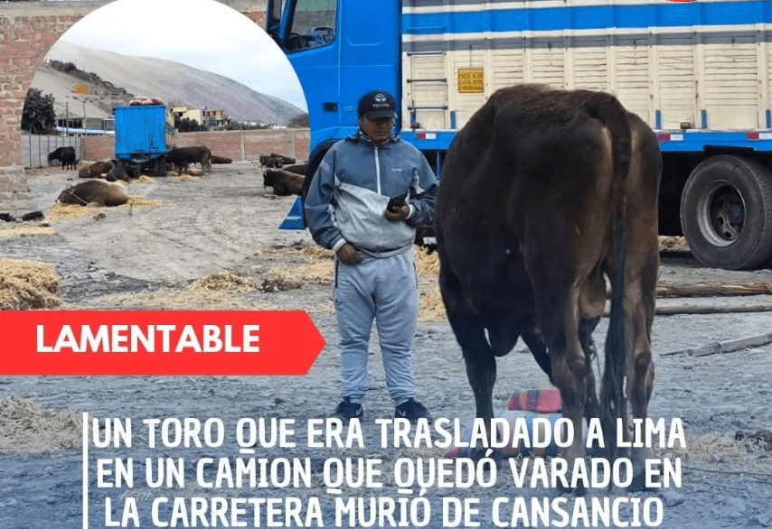 MISTI RIMAYPI: El conductor de un camión que transportaba treinta toros desde la región Puno hacia la ciudad de Lima denunció que, debido al bloqueo de la carretera Panamericana Sur a la altura del kilómetro 782 en Ocoña, provincia de Camaná, uno de los animales murió y otro se encuentra al borde de la muerte por falta de comida y agua, el cansancio y el estrés.
