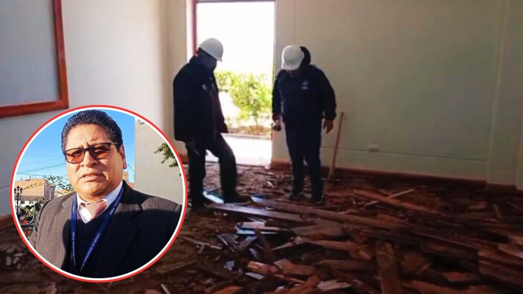 Durante una reciente labor de fiscalización, el consejero regional de Yunguyo, Rolando Rivera Zevallos, constató el deterioro avanzado varias aulas del Instituto de Educación Superior Tecnológico Público de esta provincia. Las aulas, entregadas hace apenas dos años, presentan pisos de madera completamente destruidos, lo que ha dejado inhabilitados estos espacios para el uso académico.