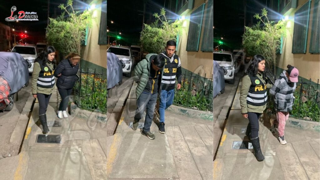 En un operativo ejecutado durante la noche, agentes de la Policía Nacional detuvieron a tres personas identificadas como Elizabeth Pineda Calsin (35), Betty Chilo Condori (37) y Aymar Ortega Pilco (34), señaladas como presuntos integrantes de la banda delictiva conocida como “El Grinch y sus Nenas”.