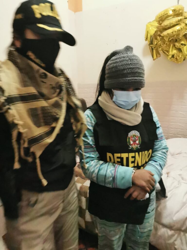 El operativo iniciado la noche del ultimo lunes se prolongó hasta la madrugada de ayer, los detenidos son: Edith Endara Ortiz de 44 años, Arnulfo Condori Valero de 50, Edwin Choque Choque de 35, Tatiana Coaquira Endara de 24, Milagros Mamani Zapata de 24, María Pilco Carpio de 29, Sofia Yanqui Pari de 24, Juan Quispe Solorzano y Armando Quispe Churata de 45 años.