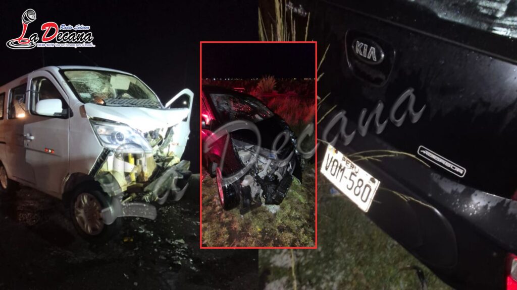 De acuerdo con información preliminar, el accidente ocurrió tras un choque frontal entre dos vehículos: un automóvil color negro, marca Kia, modelo Picanto, con placa de rodaje V0M-580, y una combi pequeña de color blanco. El fuerte impacto ocasionó serios daños en ambas unidades y generó alarma entre los conductores y pobladores que transitaban por la zona.