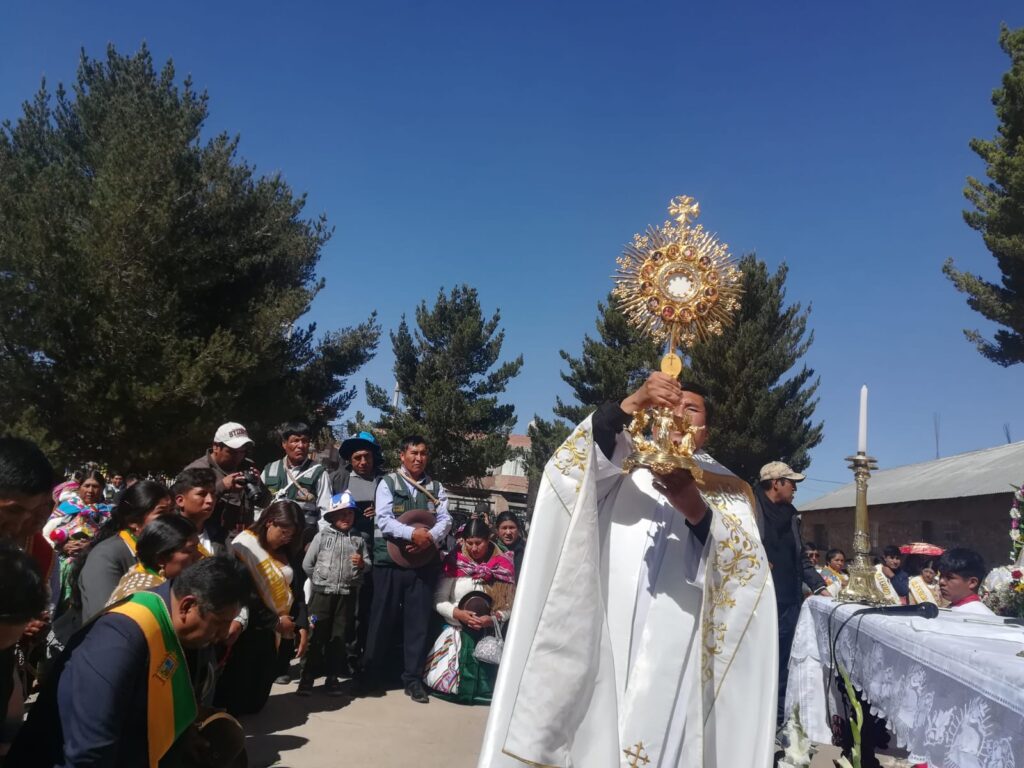 Desde tempranas horas de ayer los ciudadanos del distrito de Caracoto se concentraron en la parroquia San Felipe para participar de los actos celebratorios del Corpus Cristi. El párroco de la iglesia Abdón Cruz Huacasi ofició el acto litúrgico donde dio a conocer la importancia de esta fecha que se celebra por primera vez en Caracoto.