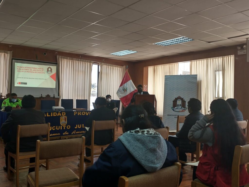 Con la participación de autoridades locales, representantes de las instituciones públicas de la provincia de Chucuito- Juli, la mañana de ayer, se llevó acabo la reunión intersectorial, para la conformación del Comité para el Buen Retorno al Año Escolar – BRAE 2022 convocada por la UGEL Chucuito- Juli.