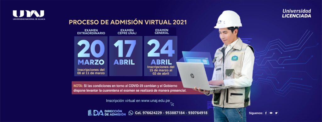 Cabe destacar que, los exámenes se desarrollan de manera virtual; no obstante, si se suscita algún cambio en lo que refiere a la covid 19 por parte del gobierno central, el examen podría desarrollarse de manera presencial.