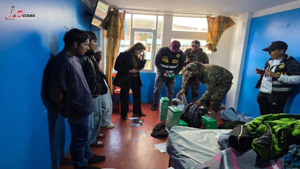 Las labores de inteligencia permitieron ubicar a los implicados en un hospedaje de la ciudad de Ayaviri. En ese contexto, el pasado 26 de marzo de 2026, efectivos policiales ejecutaron un operativo en el establecimiento denominado “Hostal Gamarra”, donde se procedió al registro de sus pertenencias. Durante la intervención, se hallaron paquetes rectangulares tipo ladrillo ocultos en mochilas y maletas.