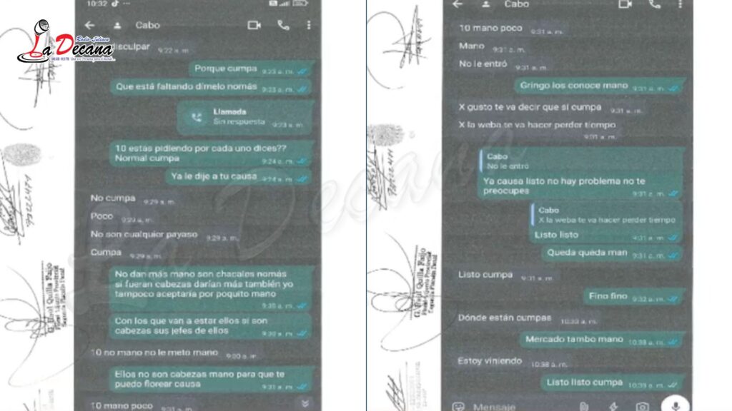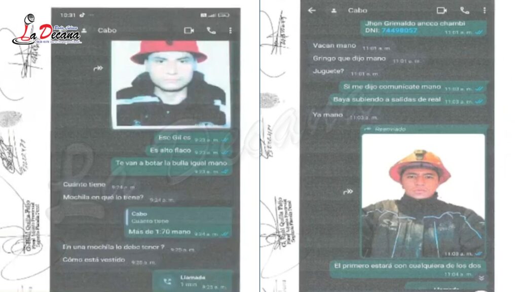 Las investigaciones también revelaron la posible participación de otras personas identificadas mediante alias como “El Cabo”, “Sonrisas”, “Lige”, “Gringo”, “Cevin”, “Dunker” y “Cumpa”, quienes habrían mantenido comunicación con los detenidos.