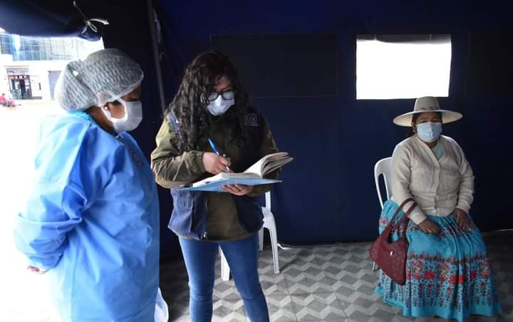 La supervisora se entrevistó con la responsable de la brigada Ángela Llanos del Centro de Salud Metropolitano, la misma que informo sobre los avances de los vacunados, el cumplimiento de las normas de bioseguridad y los procedimientos que se desarrollan en el momento de la vacunación, como la identificación de persona, la firma del consentimiento informado, la evacuación médica, la aplicación o inoculación de la vacuna, la observación post vacunación, el cumplimento de la funciones de los equipos de registro, el stock de biológicos (vacunas) y otro que corresponden al proceso de vacunación.