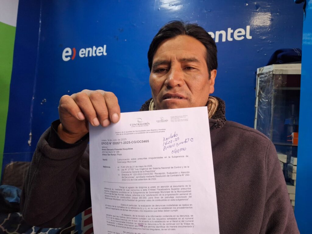 Antero Pimentel Esquivias, ex presidente de las cuatro zonas de Juliaca, expresó su preocupación por la situación del supuesto robo de combustible en el departamento de Sanzco de la Municipalidad Provincial de San Román. Hasta la fecha, afirmó, no se han obtenido resultados claros en la investigación de este caso.