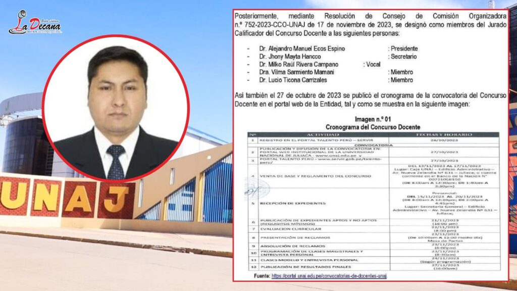Según el OCI, la comisión evaluadora habría modificado los puntajes para favorecer al postulante, contraviniendo las bases del concurso y vulnerando principios de legalidad, meritocracia y acceso justo a la docencia universitaria. El concurso convocado por la Resolución N.º 709-2023-CCO-UNAJ ofrecía 10 plazas docentes. En el caso específico de la plaza con código DACI-0023-000049-04, se presentaron cinco postulantes, pero el jurado designado por Resolución N.º 752-2023-CCO-UNAJ no habría respetado los criterios mínimos establecidos.