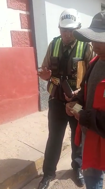 En este video, de una duración de 52 segundos se evidencia cuando uno de los inspectores le solicita una coima de 20 soles, para olvidar la infracción de tránsito, “para mí 10 y para el 10 si quieres nomas, no puedes hacer eso”, le dijo el inspector de tránsito.