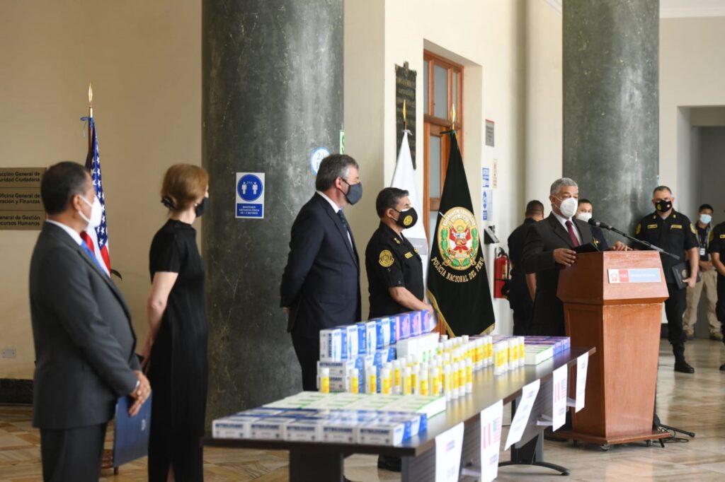 Sus declaraciones fueron vertidas tras la ceremonia de entrega de una donación hecha por la embajada de los Estados Unidos en Lima, consistente en 30 mil kits de protección personal frente al covid-19. Estos serán entregados al personal de la Policía que participará en las labores de seguridad de los comicios, añadió el ministro.