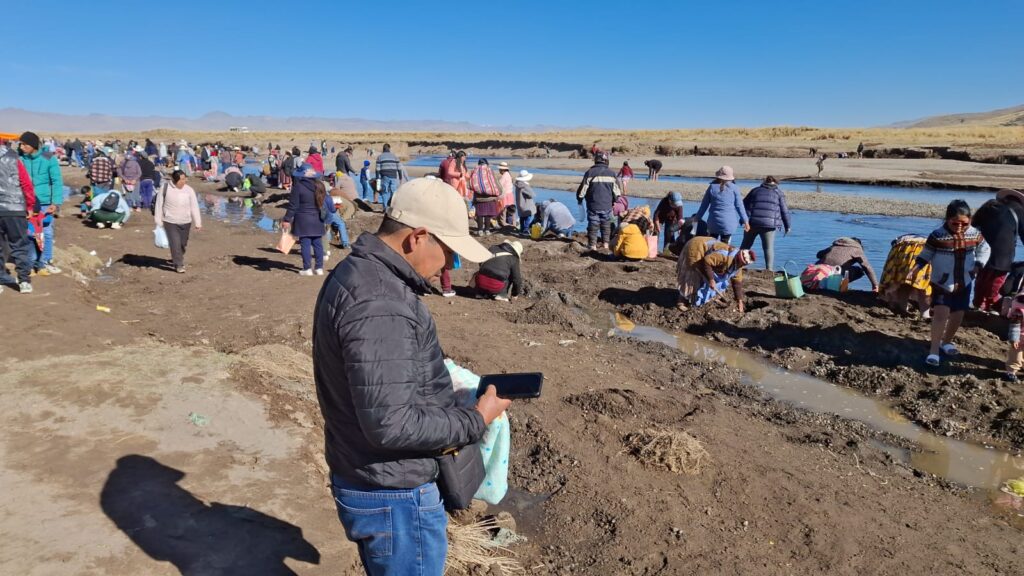 Como cada 1 de agosto, cientos de familias juliaqueñas se trasladaron desde muy temprano a diferentes ríos de la zona, entre ellos el río Unocolla, en la salida a Lampa, para cumplir con una de las costumbres más arraigadas del altiplano.