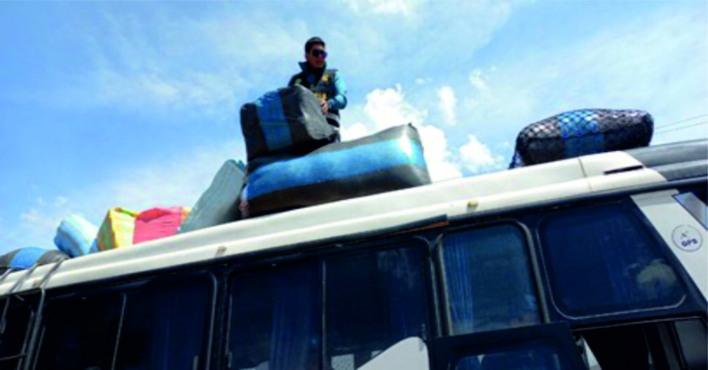 Al verificar la parte superior (parrilla) del vehículo en mención, se pudo constatar la presencia de gran cantidad de bultos, entre los cuales algunos contenían prendas (medias para adultos y niños) de procedencia extranjera, por lo cual, se procedió a solicitar al conductor la documentación de dicha mercancía este indico que dichas bultos son de los pasajeros, de la misma forma procedieron a preguntar a los pasajeros sobre la propiedad de dichos bultos, tal es así, que al no atribuirse ningún pasajero la propiedad de dichas mercancías éstos se declararon en abandono.