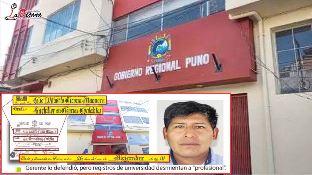 Lo que comenzó como una sospecha terminó por confirmarse donde Celio Wilberto Ticona Maquera, quien se desempeñó como «Especialista en Presupuesto para la Gerencia General Regional» en el Gobierno Regional de Puno (GRP), utilizó un grado de bachiller falso para acceder a su cargo. Ticona Maquera laboró durante los dos últimos años en la actual gestión, llegando a cobrar más de 100 mil soles por sus servicios.
