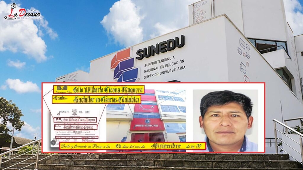 Registros universitarios desmienten al «profesional» El diploma presentado por el exservidor indicaba que era bachiller en Ciencias Contables por la Universidad Nacional del Altiplano (UNA) de Puno, supuestamente expedido el 22 de diciembre del año 2000. Sin embargo, al realizar la consulta formal, la Oficina de Grados y Títulos de la UNA informó que no existe rastro alguno del implicado en dicha carrera.