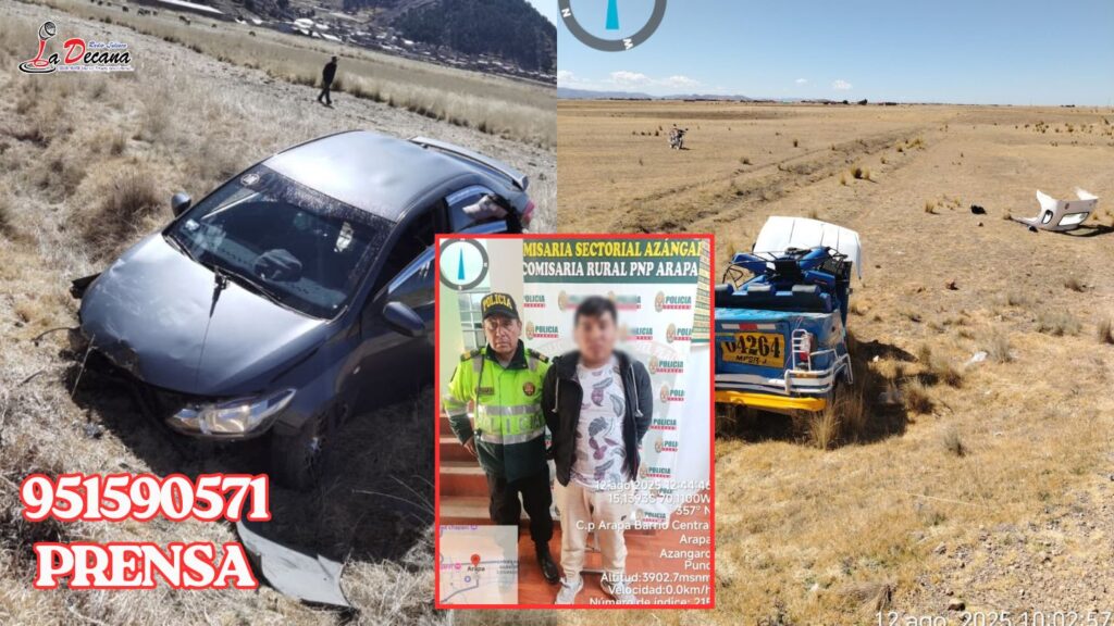 Personal de la Comisaría de Arapa intervino al conductor responsable de un fatal accidente de tránsito que dejó dos personas fallecidas en la vía Saman–Caminaca, a la altura de la comunidad de Chejachi, distrito de Arapa. El siniestro se registró el 12 de agosto a las 13:10 horas, tras un choque por alcance entre un automóvil y una moto taxi.