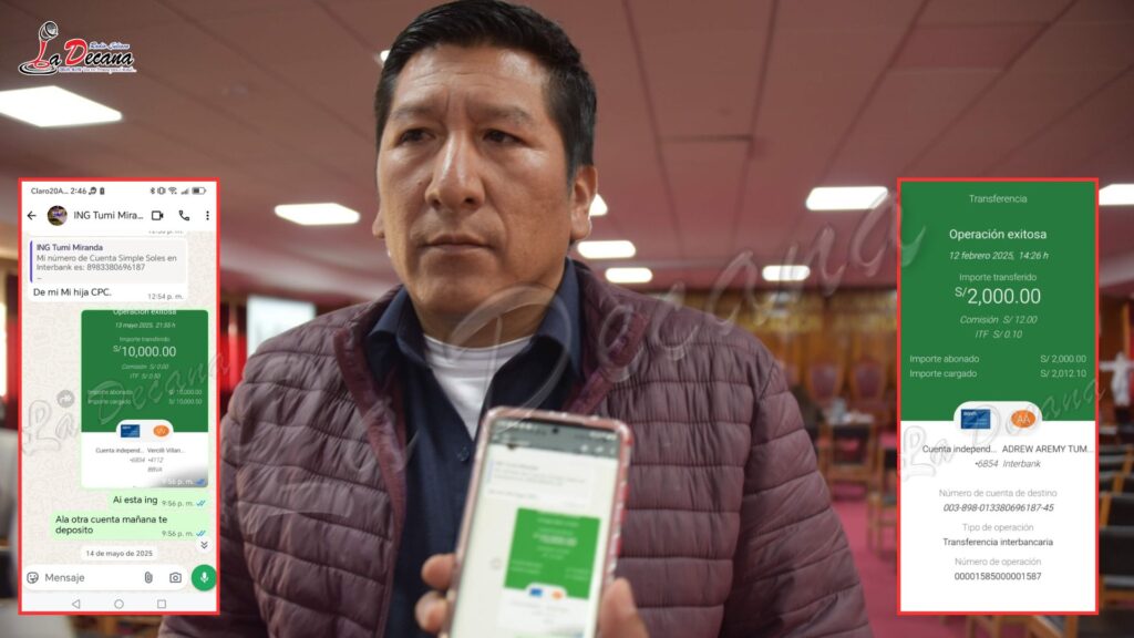 Un trabajador del consorcio encargado de la obra relató —bajo reserva de su identidad— que el regidor Ovidio Edgar Tumi Miranda habría distorsionado su labor de fiscalización, exigiendo a su jefe sumas de dinero para permitir el avance del proyecto. Según su testimonio, el regidor habría solicitado medio millón de soles, argumentando que la obra se habría concretado “gracias a su gestión”.