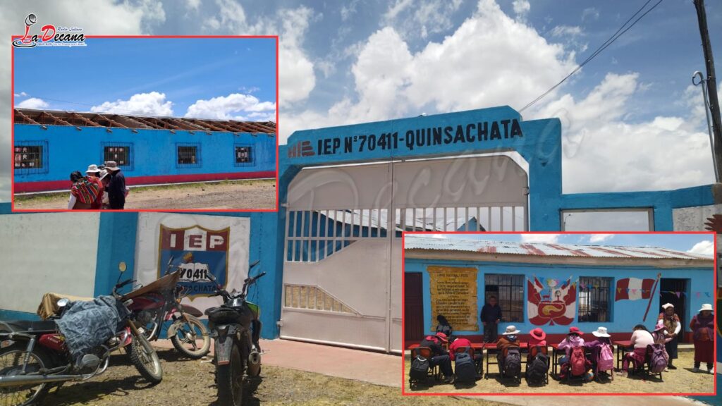 Fuertes vientos registrados la tarde del sábado 22 de noviembre provocaron el desprendimiento del techo de dos aulas de la institución educativa N.° 70411 Quinsachata, ubicada en el sector de Cabanilla, dejando a 16 estudiantes sin espacios seguros para el desarrollo de sus clases.