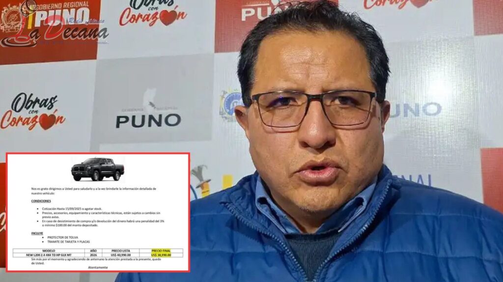 El Gobierno Regional de Puno habría adquirido una camioneta por S/ 180 mil soles, situación que generó cuestionamientos por la diferencia de aproximadamente S/ 40 mil soles con el precio de mercado. Ante ello, el gerente general del GORE Puno, Oscar Macedo, señaló que la compra se realizó dentro del presupuesto aprobado de S/ 195 mil soles establecidos en el expediente de contratación del año 2022 y aseguró que se cumplió con todos los requisitos legales.