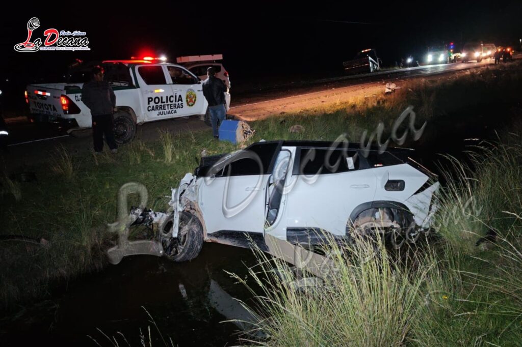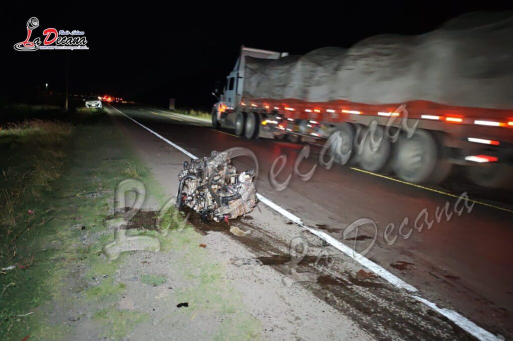 La camioneta llevó la peor parte del siniestro. Según se observó en el lugar, el motor del vehículo fue expulsado aproximadamente a 10 metros de distancia, quedando sobre la vía, mientras que la unidad terminó a un costado, en lo que sería un canal.