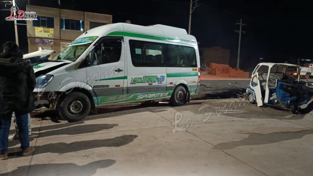 El hecho se registró aproximadamente a las 8:00 p. m., a la altura del kilómetro 7 de la salida a Huancané, donde un miniván de la empresa Solitario Vip, con placa T6Z – 953, que ingresaba a la ciudad, impactó de forma violenta contra un mototaxi tipo “Torito” de color azul con blanco de placa 2306 – 2F.
