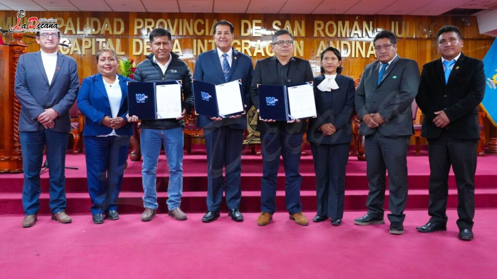 En un hecho considerado trascendental para el futuro de Juliaca y la región Puno, la Municipalidad Provincial de San Román, encabezada por el alcalde Oscar Cáceres Rodríguez, suscribió un importante convenio interinstitucional con ProInversión y el Gobierno Regional de Puno, con la finalidad de impulsar la formulación del proyecto “Mejora de las condiciones vinculadas al corredor logístico sur y sus corredores alimentadores – Puerto Seco de San Román”.
