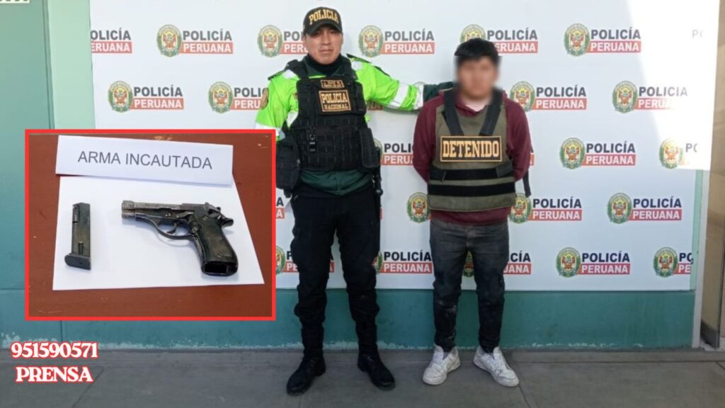 La mañana de este 17 de agosto, alrededor de las 09:30 horas, agentes de la Comisaría PNP Juliaca detuvieron a Robinson Jhojan Cutipa (21) por los presuntos delitos de robo agravado en grado de tentativa y tenencia ilegal de arma de fuego, luego de intentar asaltar un vehículo menor en el jirón Azángaro con jirón 23 de Febrero, urbanización San Santiago.