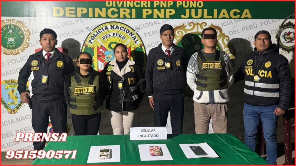 El Área de Investigación Criminal (AREINCRI) de la Policía Nacional del Perú en Juliaca logró la desarticulación de la organización criminal “Los Malditos de Torococha”, con la captura de Gino Larico (23), alias “El Frío”, y Lorena Cuadros (24), alias “La Chili”, presuntos responsables del homicidio calificado de Royer Paul Huallpa Mamani (25).