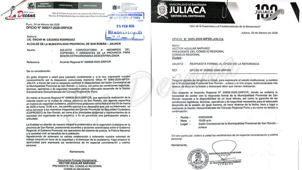 La reunión ha sido programada para el martes 3 de marzo a las 10:00 a. m. en el salón consistorial de la Municipalidad Provincial de San Román, en la provincia de Juliaca. El objetivo central será debatir y acordar medidas concretas que permitan enfrentar la criminalidad que afecta a la región.