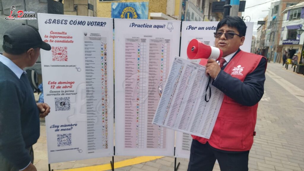 En declaraciones a la prensa, explicó que el personal del organismo electoral ha salido a las principales vías de Juliaca con una cédula modelo similar a la que se entregará el próximo 12 de abril. Además, instalaron una cédula gigante para que los ciudadanos puedan practicar el llenado y recibir asistencia directa.
