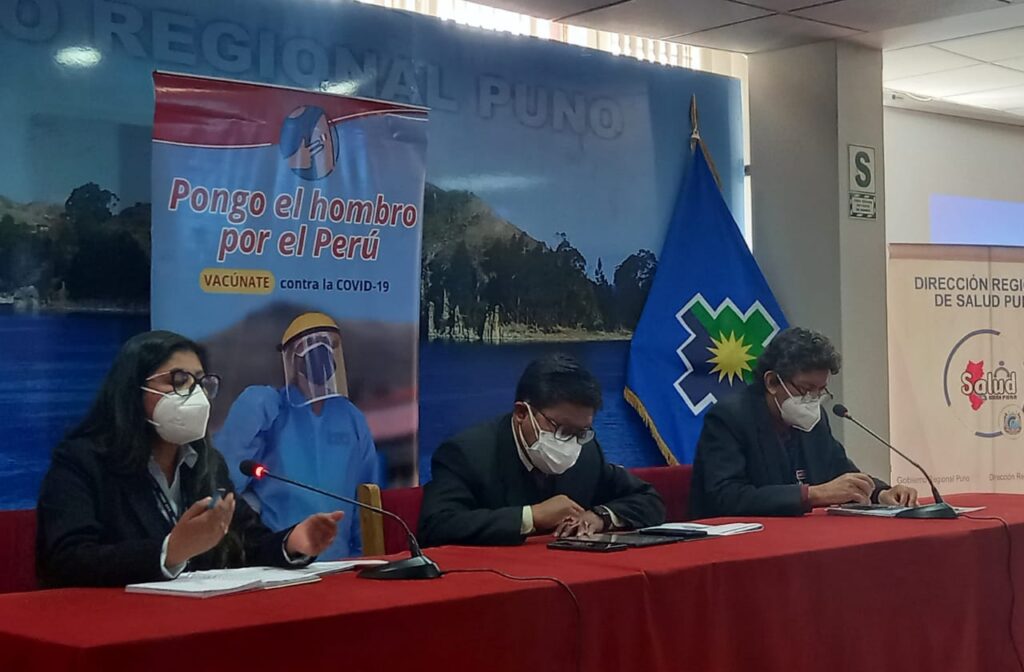 El gobernador regional Agustín Luque Chayña, el director regional de salud y coordinador regional de Comando Covid-19, Walther Sebastián Oporto Pérez y el Comité Regional de Inmunizaciones, dieron cuenta del proceso de vacunación contra covid-19 a los adultos mayores de 60 años en toda la región Puno.