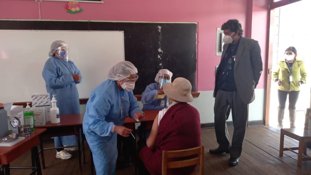Para el proceso de vacunación, a la región Puno llegó un total de 25,038 dosis de laboratorio Sinopharm, que ya fueron aplicadas al personal de salud; 55,130 dosis de laboratorio Astrazenica (22 de abril) y 103,330 dosis (01 de junio).