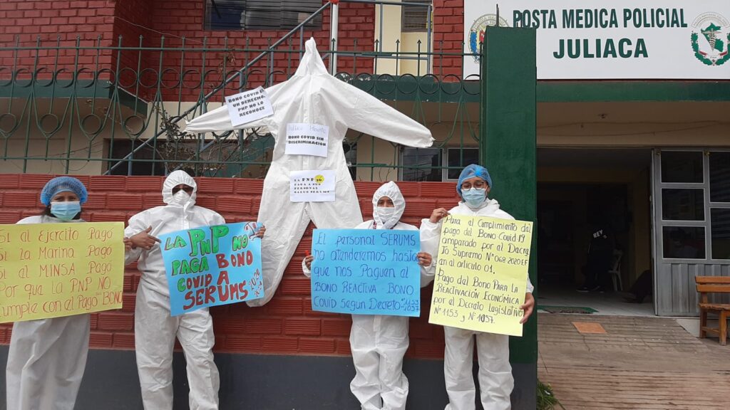 Un total de 9 médicos que prestan servicio en la Policía Nacional en el servicio de Sanidad Policial, han decidido asumir una paralización a nivel nacional a partir del día de hoy reclamando el pago de los bonos Covid-19 y Bonos reactiva que tras 8 meses de labor no han recibido, pese a que han sido infectamos sin recibir la atención.