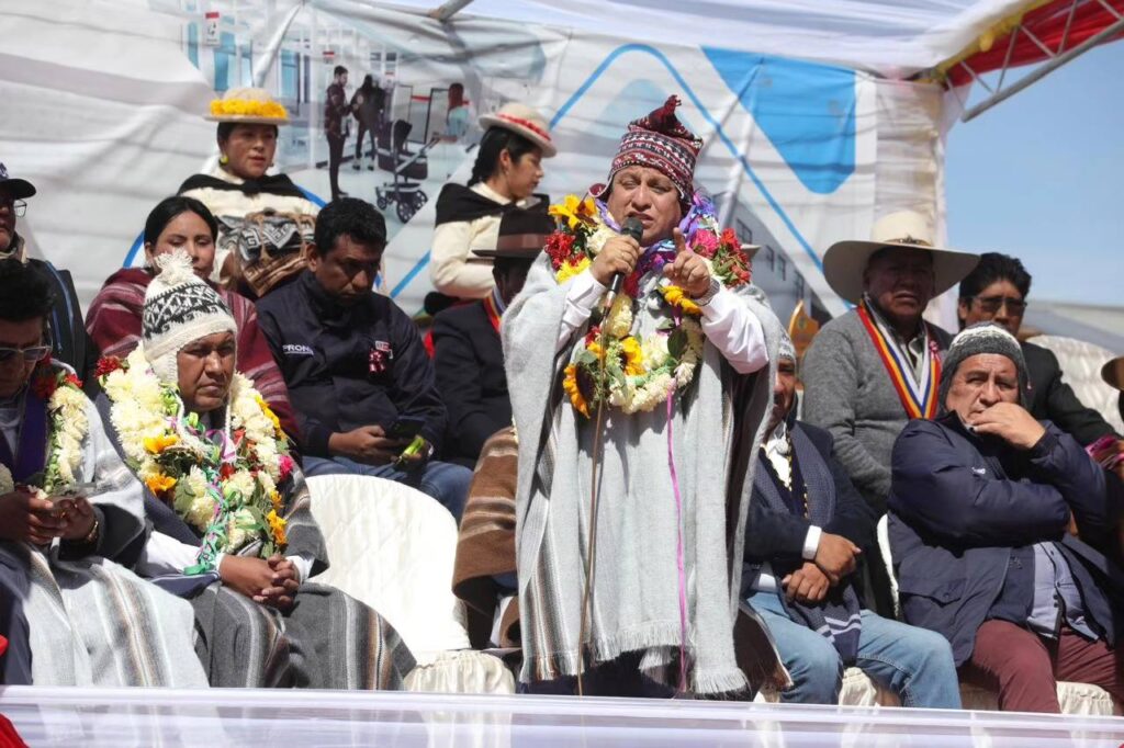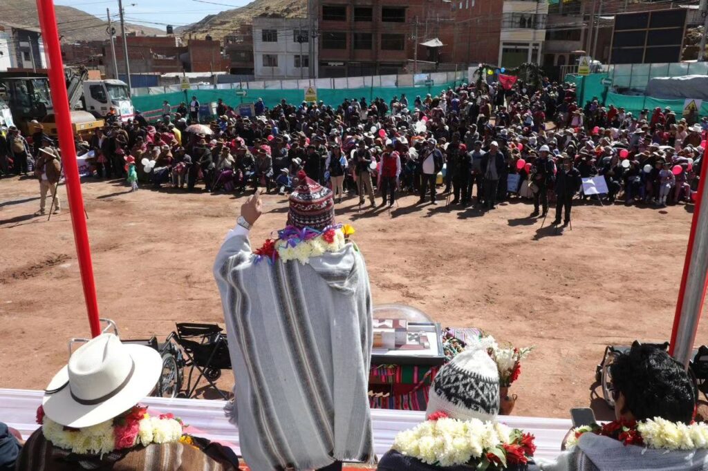 El titular de Salud fue recibido por el gobernador regional, Richard Hancco y el alcalde de Desaguadero, Héctor Sarmiento, consejeros regionales y los ciudadanos, quienes acompañaron a las autoridades en el tributo a la “Pachamama” o “Pago a la Tierra” como parte de las costumbres Aymaras para alcanzar el éxito en el desarrollo de la obra.