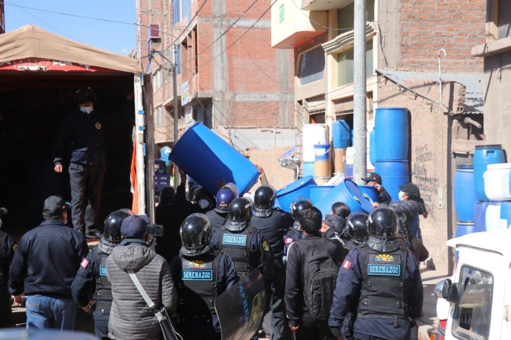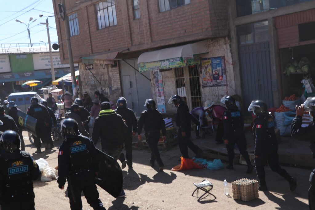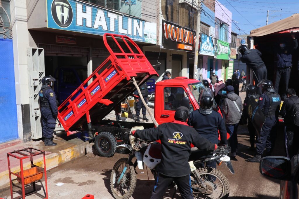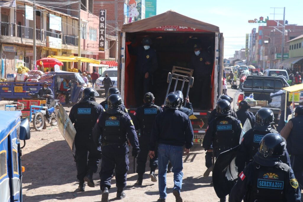 La Municipalidad Provincial de San Román-Juliaca (MPSR-J), a través de la gerencia de Servicios Públicos y Medio Ambiente, sub gerencia de Mercados y Plataformas Comerciales en coordinación con Serenazgo y Policía Municipal, hoy en horas de la mañana, realizaron un sorpresivo operativo de reordenamiento a los comerciantes que invaden las veredas y calles en el contorno de la plataforma comercial “Las Mercedes”, jirón 8 de noviembre, jirón Lambayeque y calles aledañas.