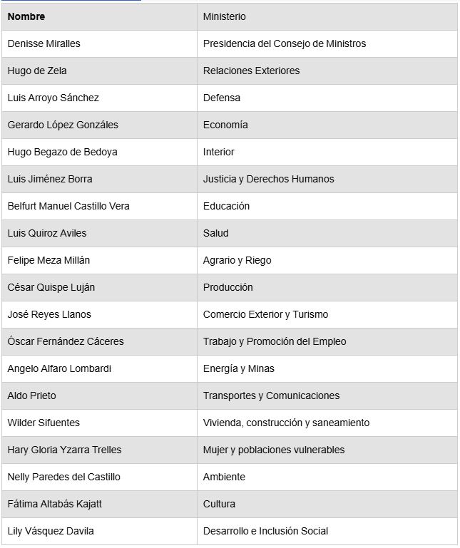 El presidente de la República, José María Balcázar, tomó juramento de su primera ministra, Denise Miralles, y los 18 miembros del gabinete ministerial que la acompañarán.