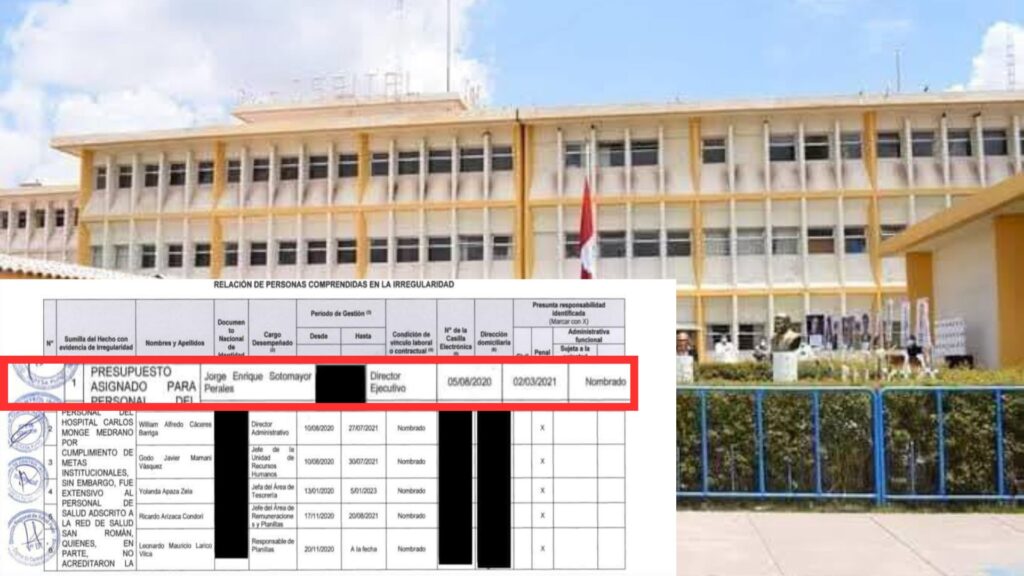 Los servidores públicos identificados en el informe con presunta responsabilidad administrativa y penal son: William Alfredo Cáceres Barriga, Ricardo Arizaca Condori, Glenys Mariela Ito Ruelas, Carlos Ruelas Colquehuanca, Godo Javier Mamani Vásquez, Jorge Enrique Sotomayor Perales, Yolanda Apaza Zela y Leonardo Mauricio Larico Vilca. Este caso subraya la necesidad de una fiscalización rigurosa en la administración de los recursos públicos en el sector salud.