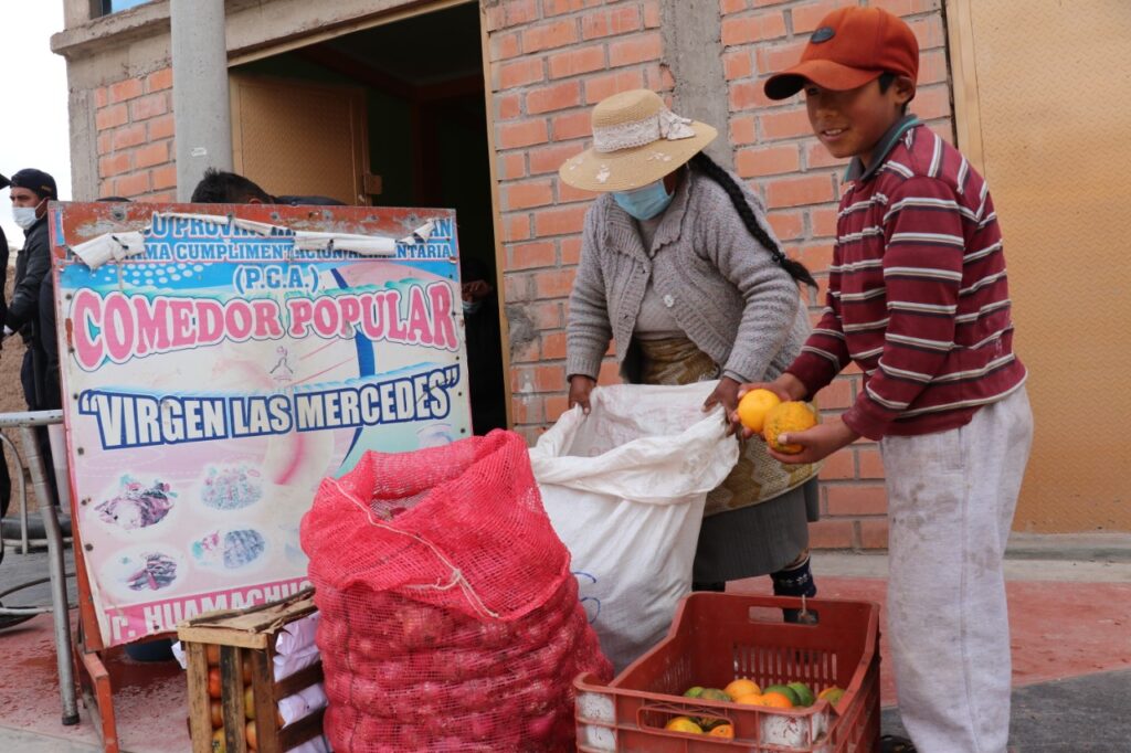 Las frutas y verduras decomisadas a algunos comerciantes quienes se resistían a mantener el orden en las calles fueron donadas a los comedores populares bajo la supervisión del regidor Fredy franklin Trujillo Mamani.