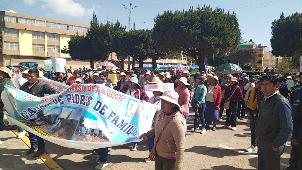 Esta mañana, un grupo de padres de familia de la institución educativa Inca Garcilaso de la Vega, ubicada en la salida a Puno, protagonizó una protesta frente a la Municipalidad Provincial de San Román, exigiendo una audiencia con el alcalde Óscar Cáceres Rodríguez.