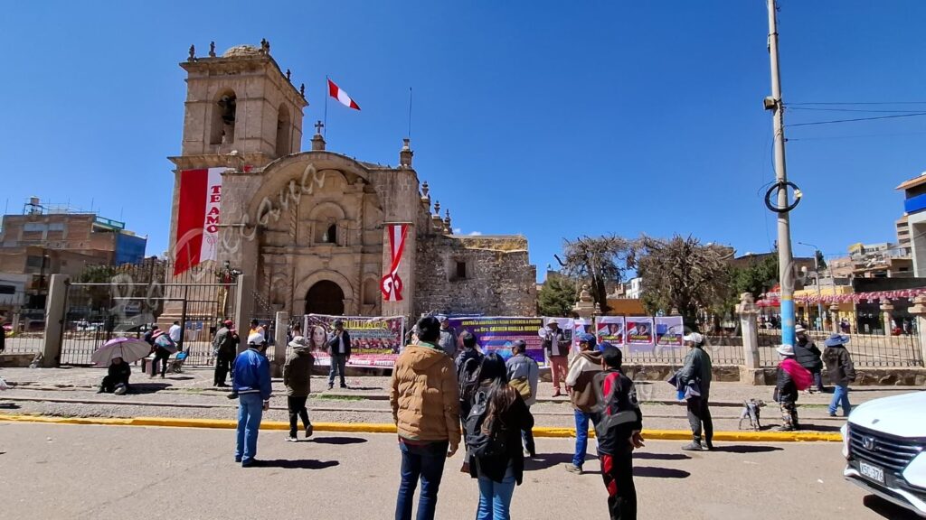 En el marco de las celebraciones por Fiestas Patrias, dirigentes de diversas organizaciones sociales de Juliaca realizaron un plantón de protesta al frontis de la parroquia Santa Catalina, con el objetivo de rechazar el gobierno de Dina Boluarte y expresar su indignación frente a los cinco congresistas por la región Puno.