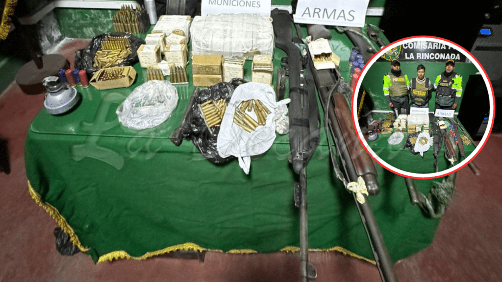 En el lugar, el varón fue identificado como Demesio Trujillo Paye (55), y en el interior del inmueble de tres pisos, ubicado en la Av. Principal, a un costado de la pollería denominado el «Pollón» en el centro poblado de Rinconada, encontraron un arsenal de armas y municiones, al parecer la misma funcionaba como almacén para gran cantidad de armamentos y municiones de distintos calibres. Según información policial Trujillo Paye presenta requisitoria vigente por tráfico ilícito de armas.