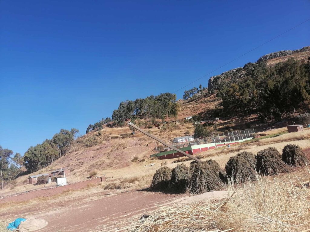 MISTI RIMAYPI: Debido a los fuertes vientos registrados en la zona, varios postes de alta tensión de energía eléctrica han comenzado a caer en Sector Llapas de la Comunidad campesina de Carabuco distrito de Pusi. Esta situación ha generado en peligro a los habitantes los ganados y viviendas de los pobladores.