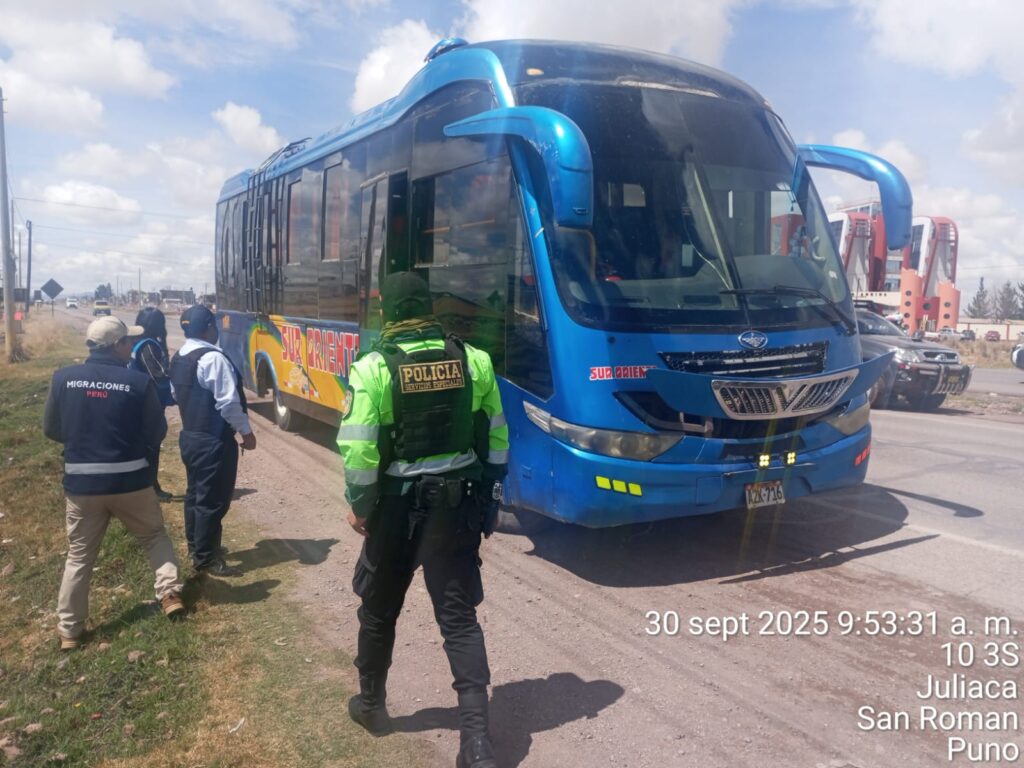 La mañana de este martes 30 de septiembre se llevó a cabo un operativo conjunto en el óvalo de la Universidad Andina Néstor Cáceres Velásquez (salida a Puno), con participación de la Superintendencia Nacional de Migraciones, la Policía Nacional del Perú y el apoyo del serenazgo de la provincia de San Román.