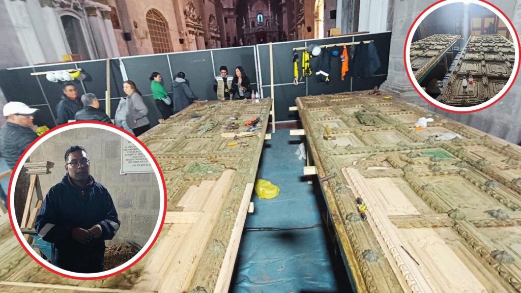 La restauración de la puerta principal de la Catedral de Puno presenta un avance del 60% y se prevé que los trabajos concluyan en febrero de 2026, antes de la festividad de la Virgen de la Candelaria. El maestro restaurador John Bautista informó que ya se culminó la estabilización estructural y la restitución de madera en ambas hojas del portón histórico, cuyos trabajos se iniciaron en diciembre de 2025.