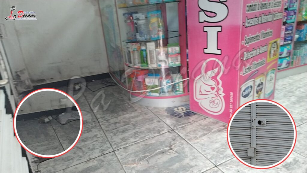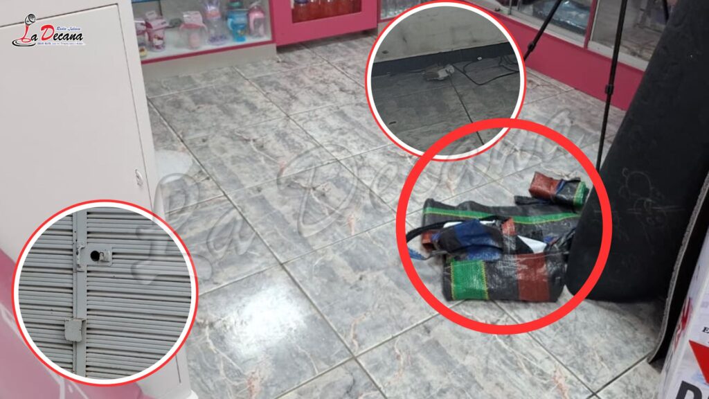 En el interior del local se hallaron tres costales de rafia, lo que hace presumir que los delincuentes tenían la intención de sustraer una mayor cantidad de productos, incluidos medicamentos y fórmulas. Asimismo, se evidenció que una de las puertas presentaba la chapa violentada, confirmando el ingreso forzado al establecimiento.