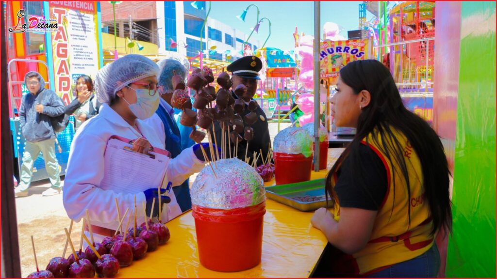 El especialista recomendó a los comerciantes que expenden manzanas acarameladas, chocolatillos y uvas a mantener sus productos protegidos del polvo y la contaminación ambiental, a fin de evitar riesgos sanitarios.