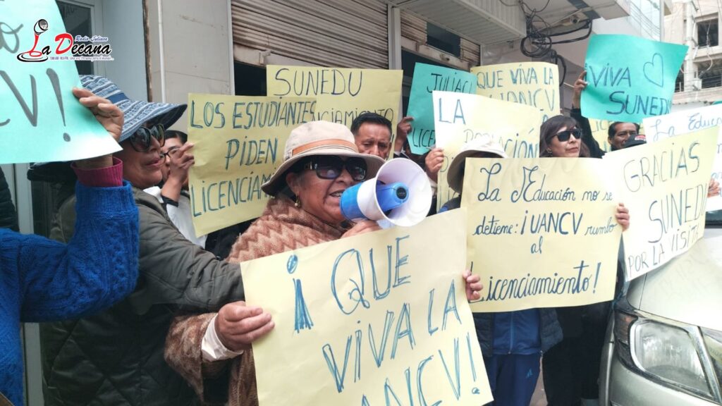 Con cartelones en mano, los manifestantes señalaron que la comunidad universitaria y diversos sectores de la población esperan que la universidad logre obtener su licenciamiento, lo que permitiría ofrecer nuevamente estudios superiores con las condiciones básicas de calidad exigidas por las autoridades educativas.