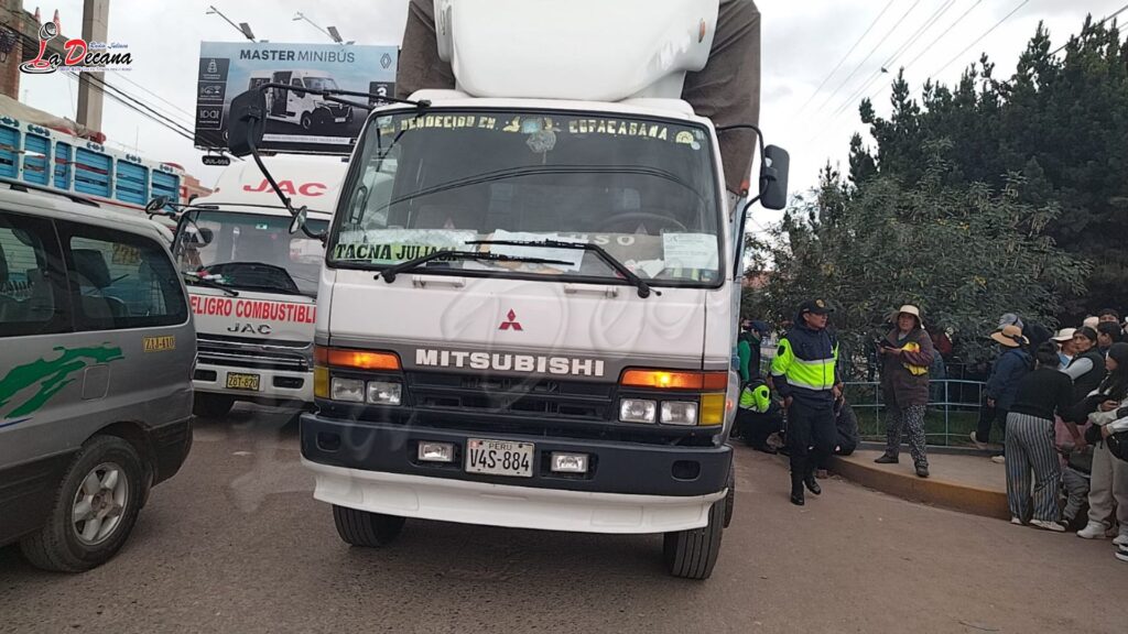 El vehículo implicado fue identificado como un camión Mitsubishi de placa V4S-884, perteneciente a la empresa “Etcar Flash Cargo”, que cubre la ruta Juliaca–Tacna. En el parabrisas del camión se halló un papel adherido con el nombre de la empresa transportista.