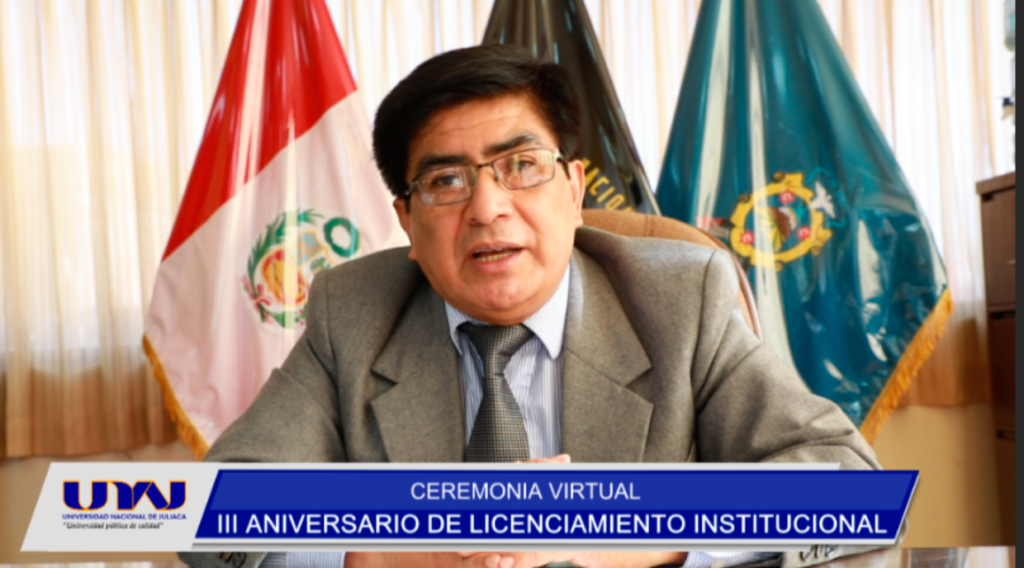 Con ceremonia virtual, la Universidad Nacional de Juliaca-UNAJ, recordó su tercer año de Licenciamiento Institucional. Cabe recordar que el 26 de agosto del año 2018 la Universidad Nacional de Juliaca-UNAJ, logró su Licenciamiento Institucional; a través de la Resolución del Consejo Directivo N° 097-2018-SUNEDU/CD, acreditando el cumplimiento de las condiciones básicas de calidad.