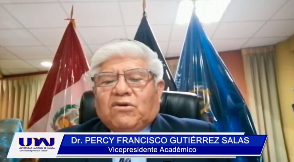 Durante la ceremonia virtual, también participaron, Yvan Quispe Apaza Ministro de la Producción, Percy Francisco Gutiérrez Salas, Vicepresidente Académico, Domingo Jesús Cabel Moscoso, Vicepresidente de Investigación, José Luís Pineda Tapia, Presidente de la Comisión de Licenciamiento Katty V. Ccarita Quispe de Gonza, secretaria general de la Universidad Nacional de Juliaca-UNAJ.